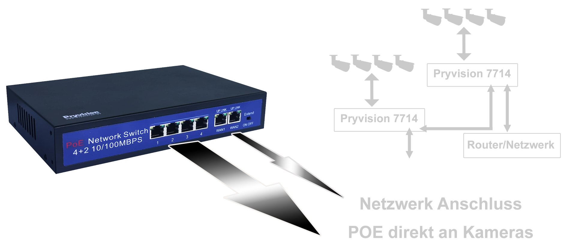 1x 4 Kanal POE Switch Pryvision-7714 1x Stromkabel